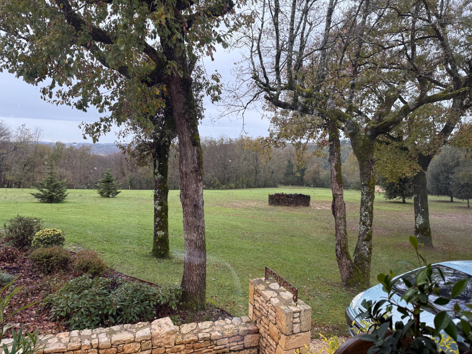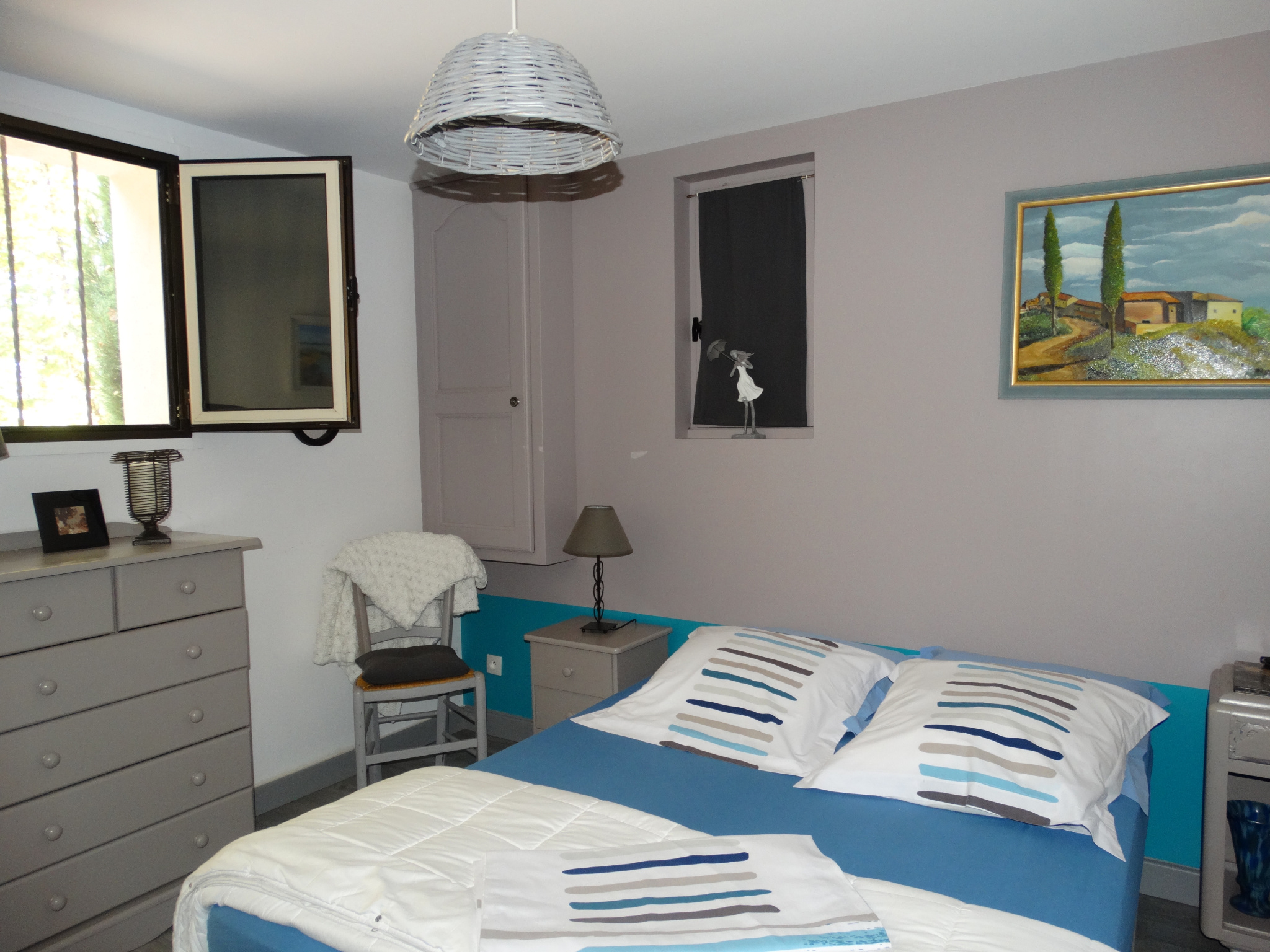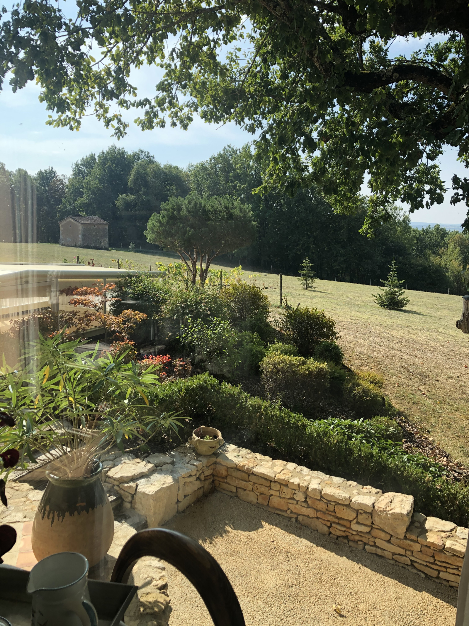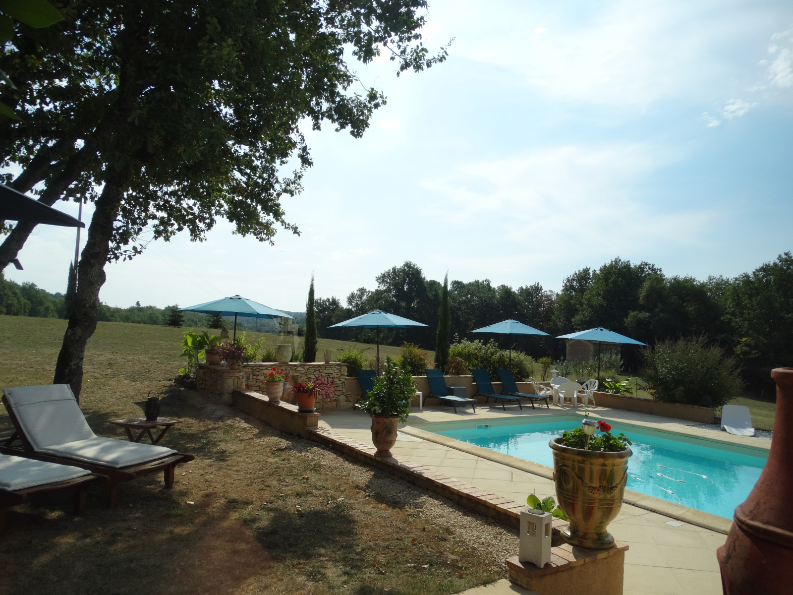 Au niveau inférieur et également de plain-pied une chambre indépendante avec sortie sur l'extérieur, sa salle de bain baignoire balnéo (marque Granform), salle de jeu de 35 m². Garage, coin pool house, cave . Côté Est, très jolie terrasse couverte de 24 m² avec sa cuisine d'été qui se prolonge par une terrasse ouverte (protégée du soleil par un store banne) sur la piscine.. La piscine recouverte d'un abri motorisé rétractable (éléments neufs) laissant la vue libre de sur la terrasse. Murettes, escaliers pierre, massifs agrémentent les abords proches de la maison, le reste du terrain (1 ha 40 en totalité) est planté de fruitiers, chênes truffiers, bosquet avec des essences locales et prairie. Il y a une vue différente à chaque coin de la maison (village, collines, campagne, vue lointaine) La maison est chauffée dans sa plus grande partie par un poêle de masse, la véranda par chauffage au sol électrique.